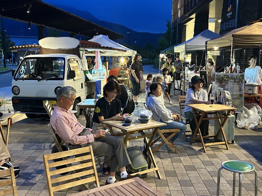 駅前が夏の夕方〜夜限定のオープンテラス居酒屋になる「くつかけゆうすげBAR 2025」開催! ワイン、クラフトビール、ガレット、ソーセージ、ガパオライス、お菓子、コーヒーなどが出店!! ドリンク券配布。ゴスペルライブも @中軽井沢駅前 in 軽井沢町 8/23