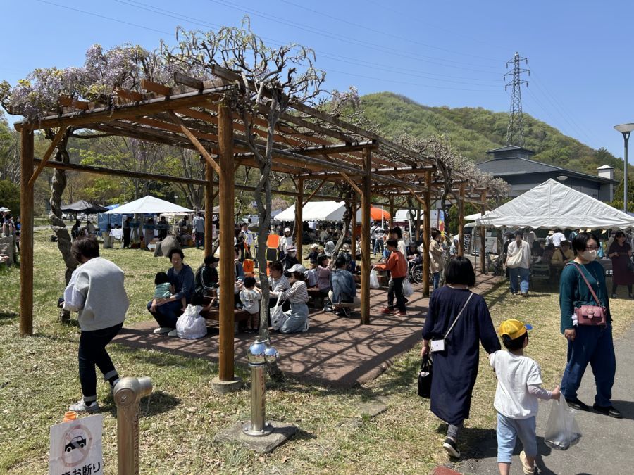 東御市の日帰り温泉施設「御牧乃湯」で開催される「おんせんdeマルシェ」! 今回は10月5日(日)に、温泉に隣接する福祉施設「ケアポートみまき」の30周年感謝祭「ケアポート祭り」と同時開催で行われ、会場はケアポートみまきの駐車場です。