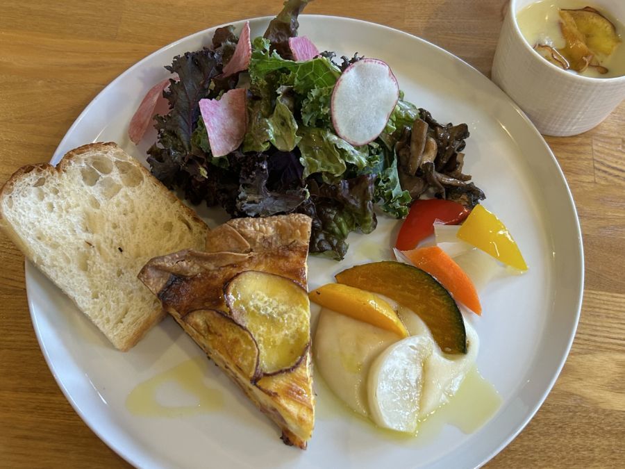 後日いただいた「本日のランチプレート」は「キッシュ」でした。ふわふわ卵の甘みとベーコンの旨みを感じるふくよかな味わいでした。