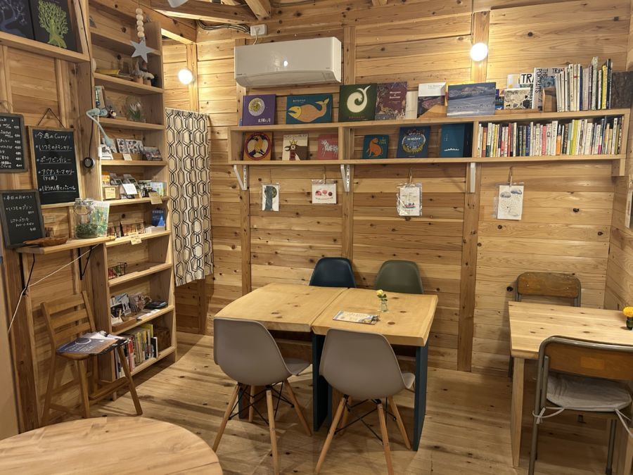セルフビルドしたという可愛らしいログハウスのお店は、テーブル席9席とカウンター4席でウッディな空間が落ち着きます。
