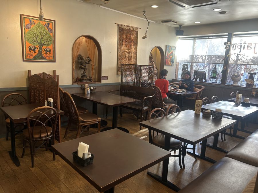 上田駅前の信号を北上して最初の信号を右折、しばらく進んで最初の信号「鷹匠町」の角に「ジャイプール」さんがあります。濃いピンク色の壁が印象的な建物を中に入ると、店内は象の置物や壁掛けなどのインテリアからインドを感じるエスニックな雰囲気です。ジャイプールさんは、1994年4月にオープンした老舗のカレー店で、本場インド人のシェフが腕をふるう本格インド料理店でもあります。